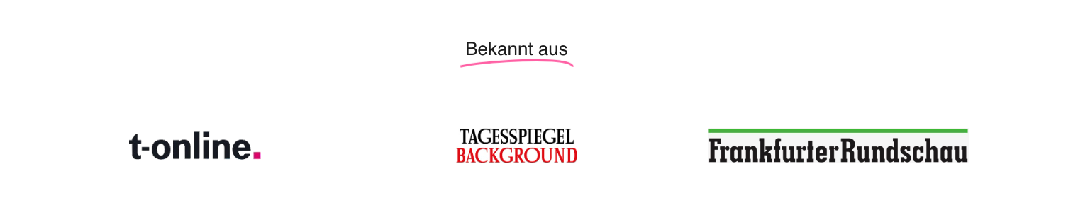 t-online · Handelsblatt · Focus · Business Punk · Frankfurter Rundschau · Merkur.de · Tagesspiegel Background · Allgäuer Zeitung · Ajoure · StartupValley
